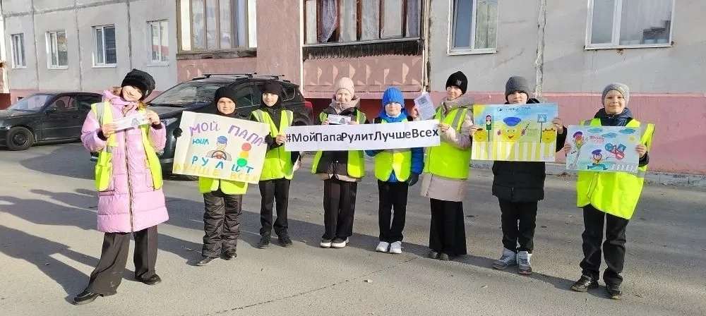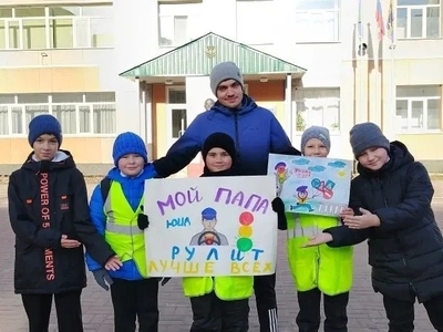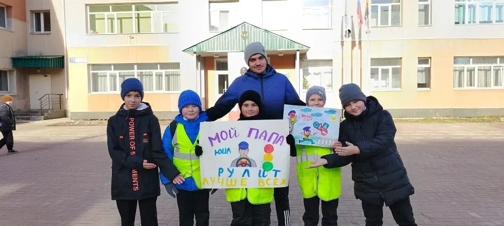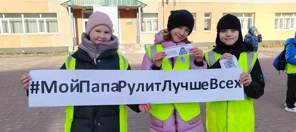 Юные инспекторы движения обратились к папам-водителям с поздравлением и призывом соблюдать Правила дорожного движения, вручив каждому водителю тематические памятки.