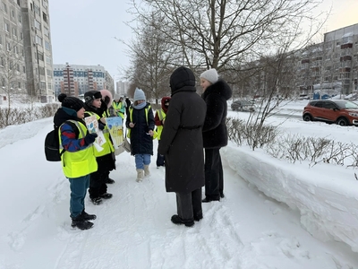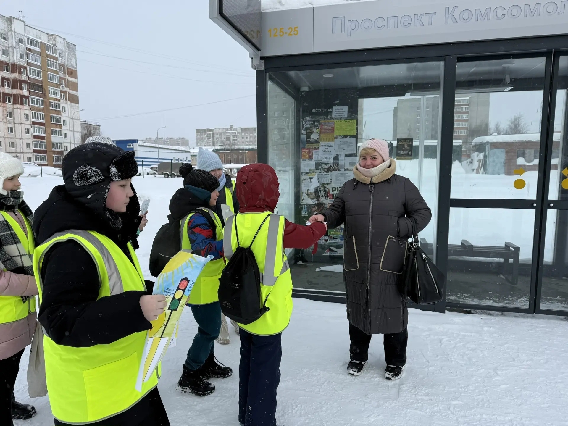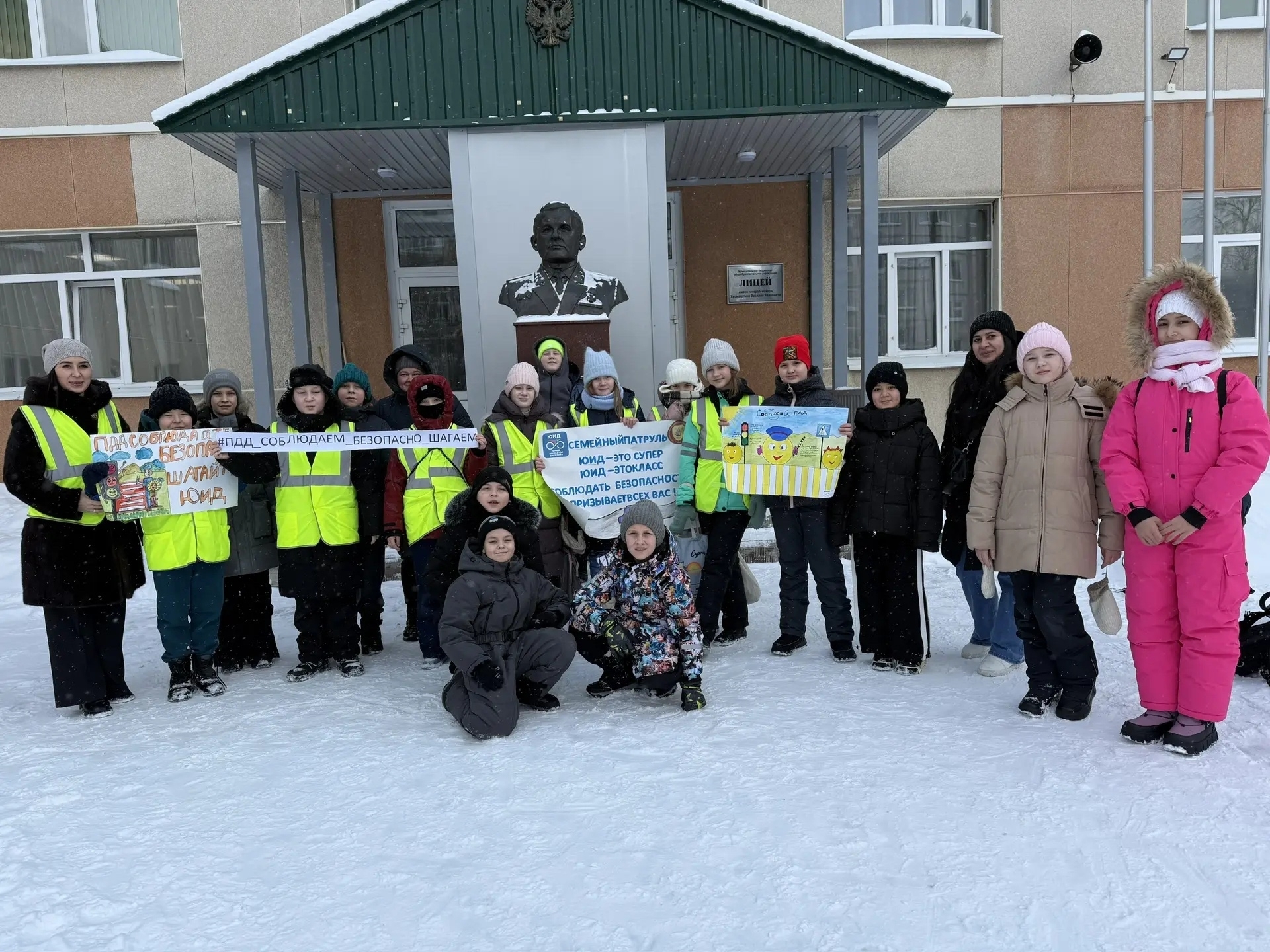 🟢 14 февраля отряд ЮИД «Сигнал» совместно с участниками " Семейного патруля" приняли участие в акции «ПДД соблюдаем, безопасно шагаем!».
