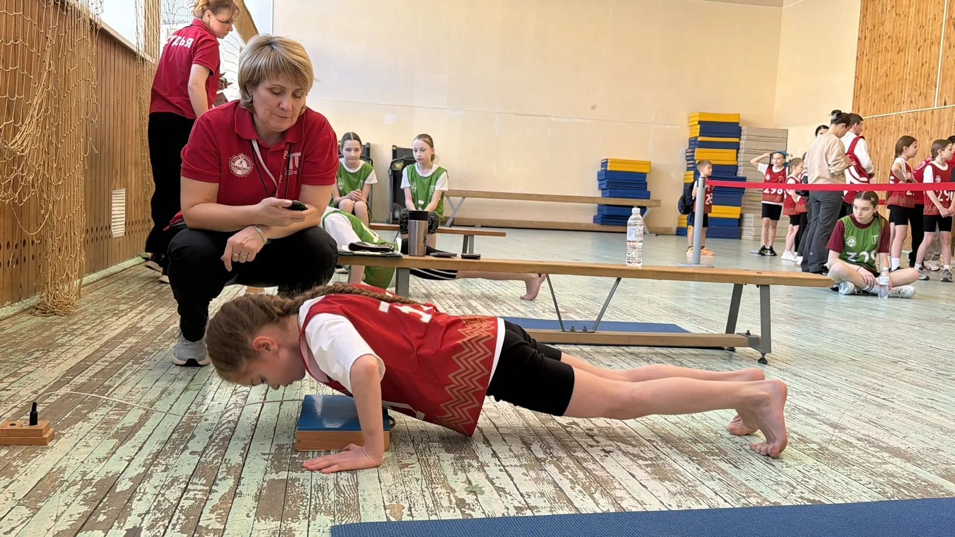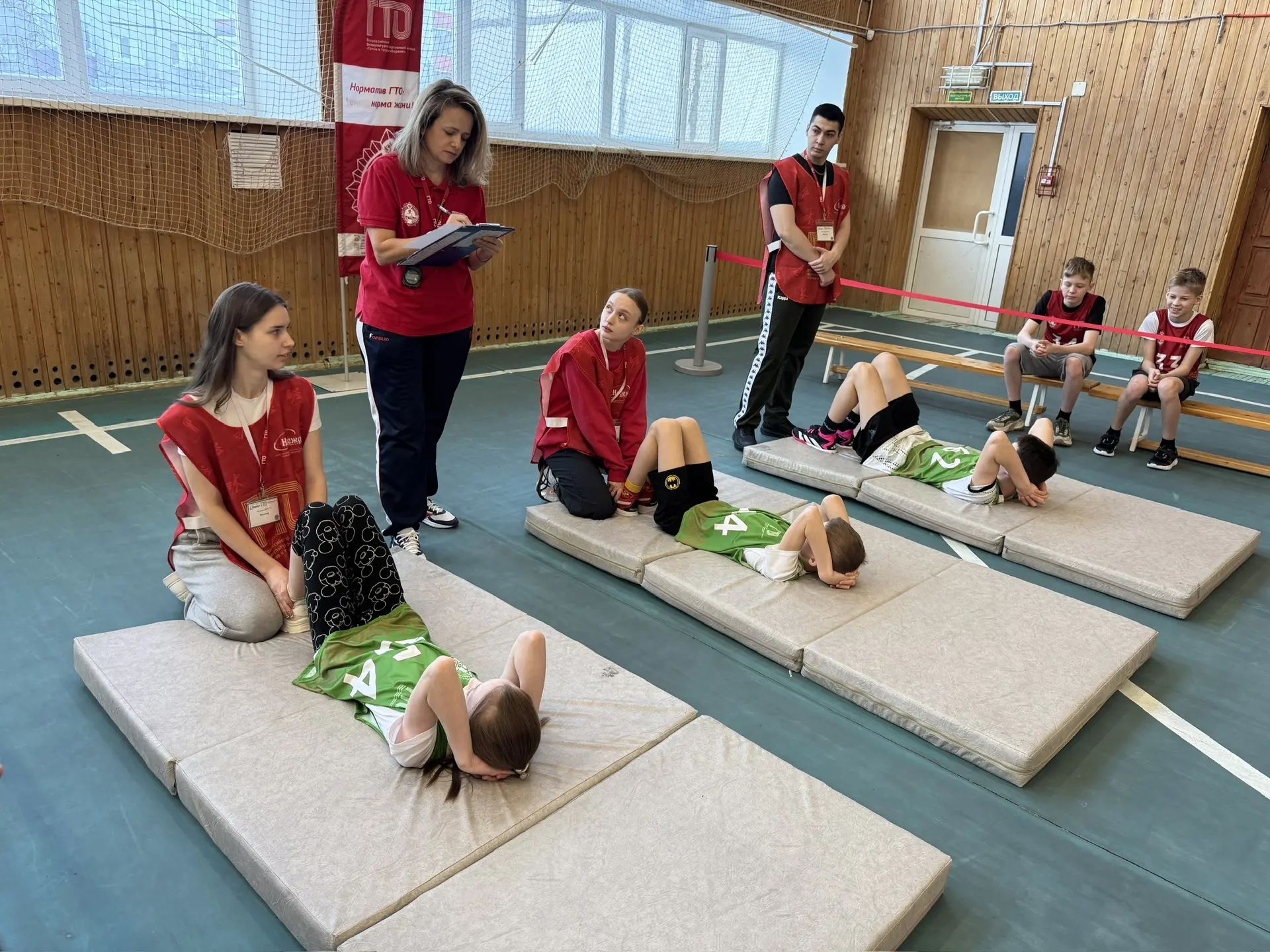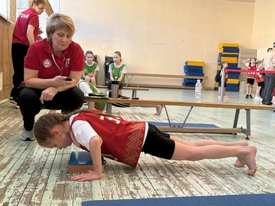 Перед началом испытаний инструктор по спорту клуба «Грация» Валиуллина Динара Анваровна провела фитнес‑зарядку — она помогла ребятам разогреться и подготовиться к выполнению нормативов!