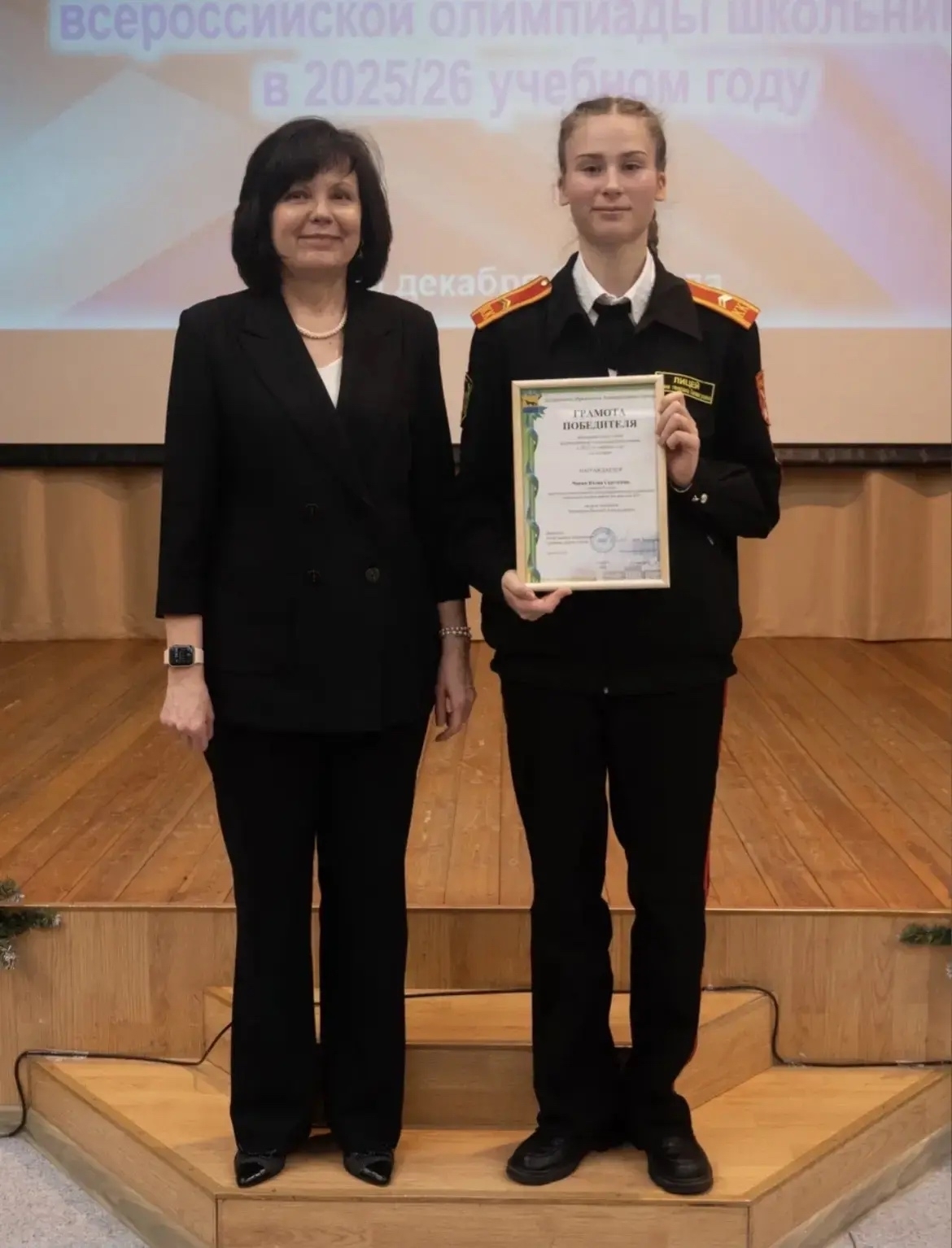 25 декабря состоялась долгожданная церемония, на которой чествовали талантливых учащихся. Особую гордость за наши достижения проявили кадеты лицея имени генерал‑майора Хисматулина В. И. — они продемонстрировали блестящие знания и показали отличные результаты!