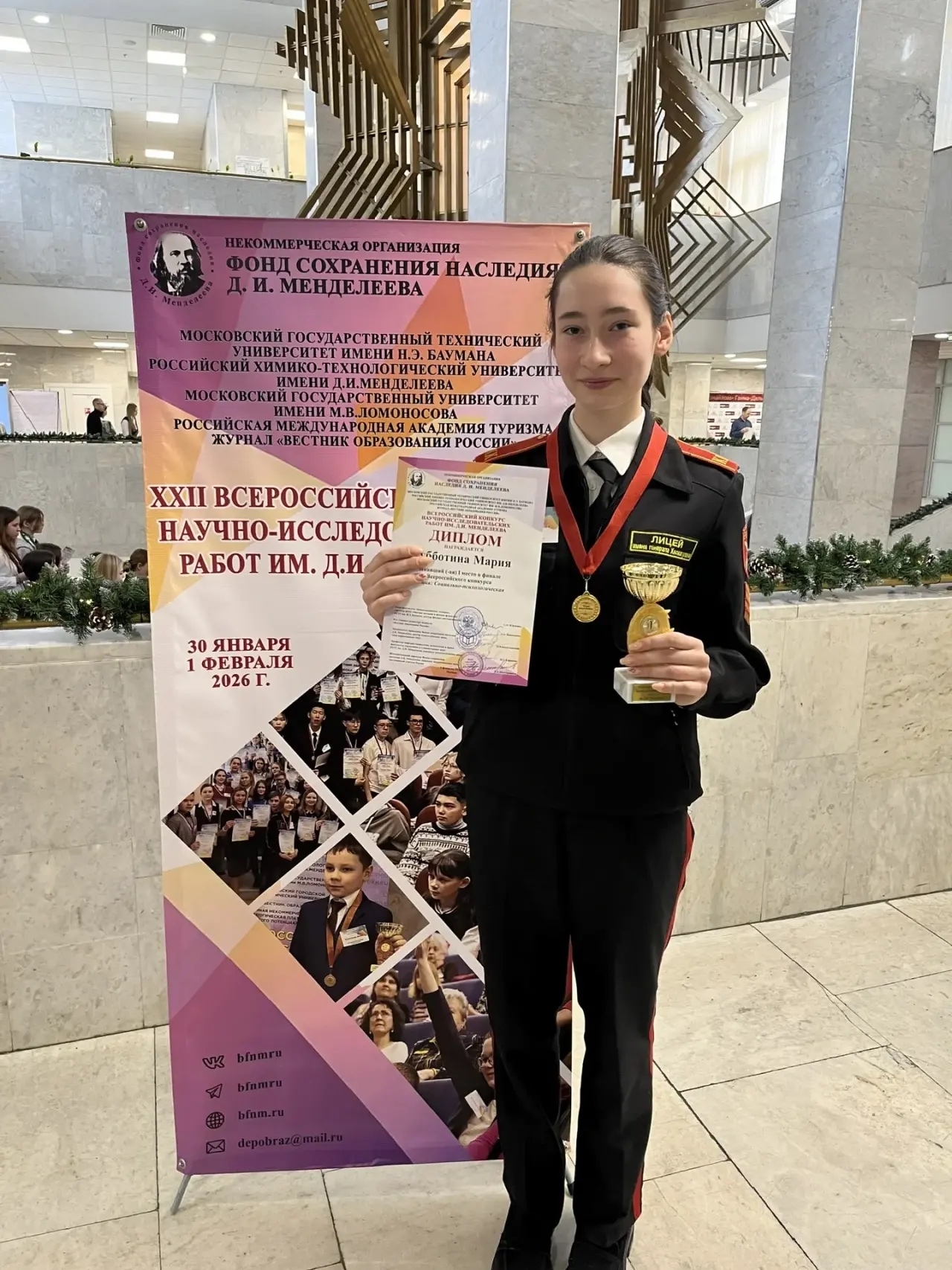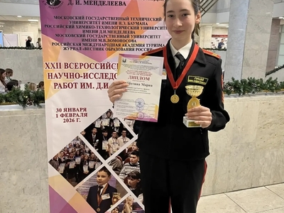 С 31 января по 2 февраля проходил Всероссийский конкурс научно‑исследовательских работ имени Д. И. Менделеева. Лицей на нём представляли два кадета: